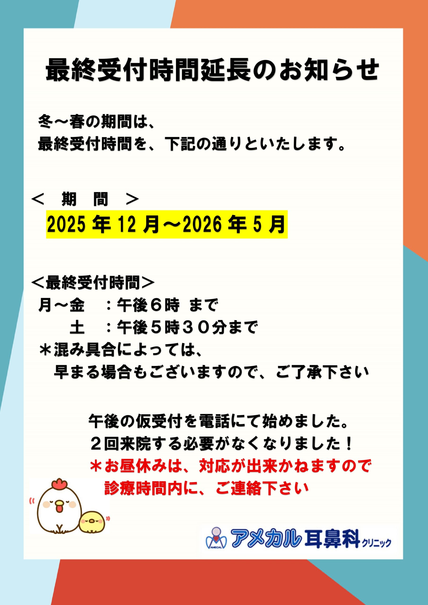 最終受付時間延長のお知らせ